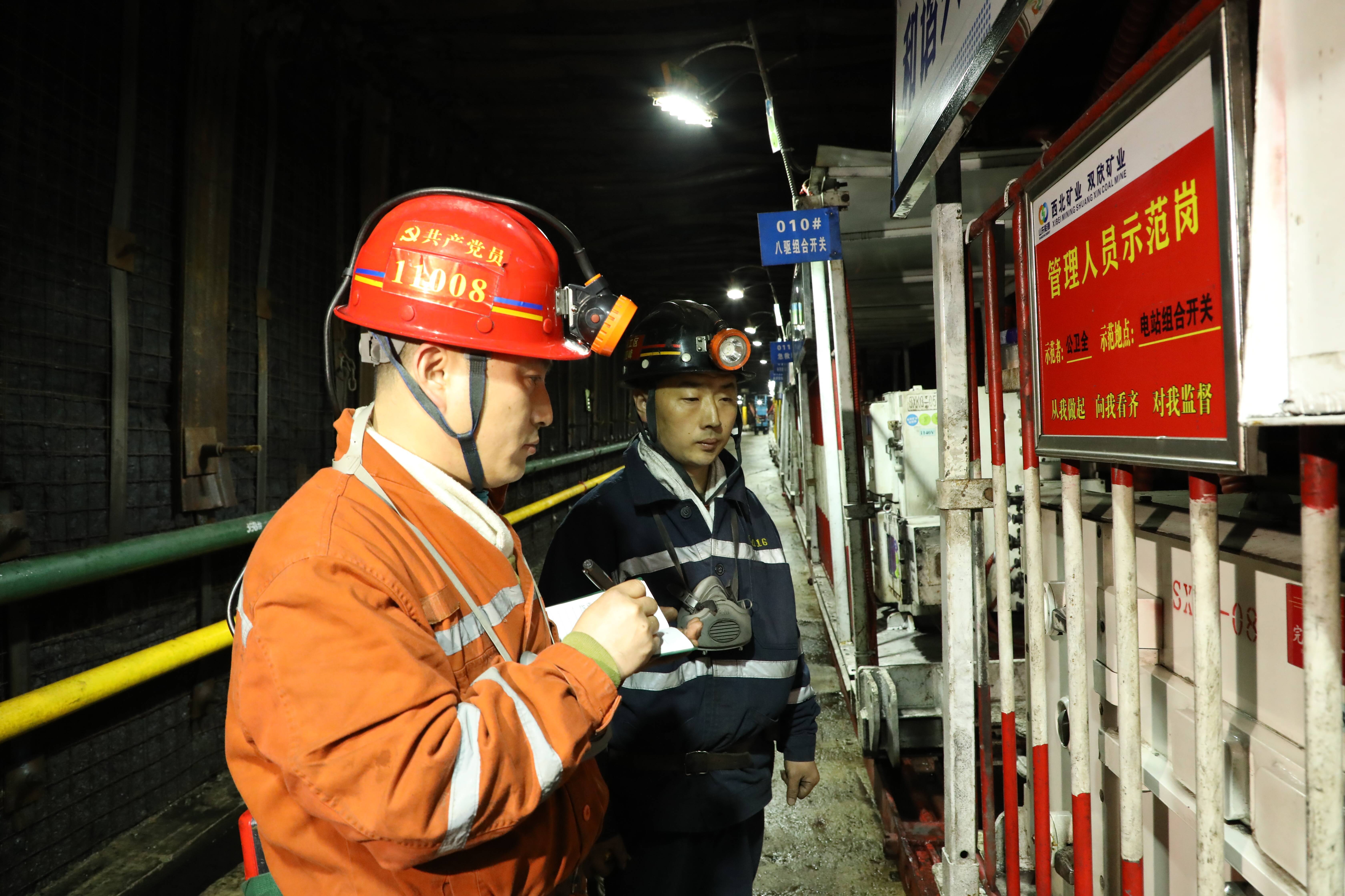 (雙欣礦業安監員對設備情況進行檢查)